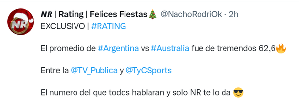 Los números finales de la Selección Argentina contra Australia fueron de 62,6 puntos de rating, lo más alto del año.
