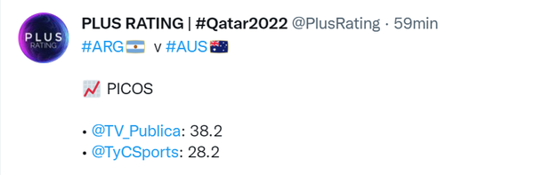 Otra vez la batalla de canales que transmiten el Mundial lo ganó la TV Pública, que tuvo picos de casi 40 puntos, mientras que la señal de cable se acercó a los 30 puntos.