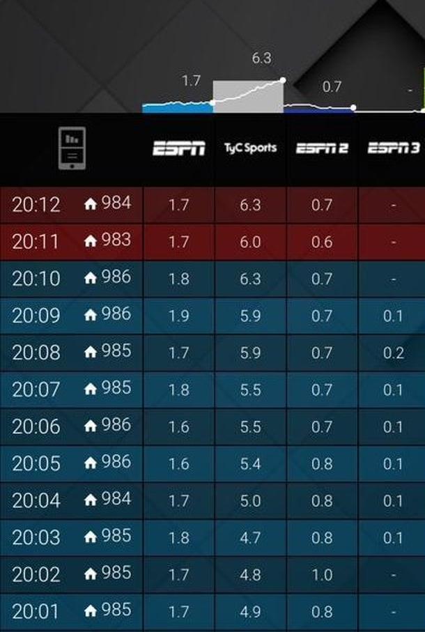 Según la cuenta @RatingDeportivo TyC Sports midió por encima de los 6 puntos de rating una vez comenzado el partido de Lionel Messi pero antes del inicio del clásico por la Copa Libertadores. Así, lideró entre los canales deportivos de cable.