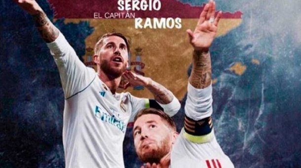 El defensor del Real Madrid y capitán de la Selección española, Sergio Ramos, polemizó sobre el referéndum catalán con una imagen en la que se lo ve con la camiseta de su club y con la imagen de España de fondo, justo atravesando su brazo sobre la parte donde figura Cataluña.