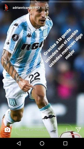 Pero el lunes en la tarde, luego de la publicación de la lista, el jugador de Racing subió una curiosa historia en Instagram. "Gracias a la gente. Ustedes son el pueblo, ustedes merecen algo mejor", escribió.