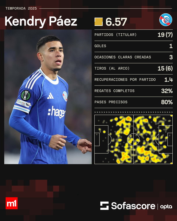 Si bien su pase pertenece a Chelsea, Kendry Páez se encontraba a préstamo desde agosto de 2025 en Racing de Estrasburgo, de Francia. En el conjunto francés disputó 21 partidos oficiales y convirtió un gol, sumando experiencia en el fútbol europeo pese a su corta edad.