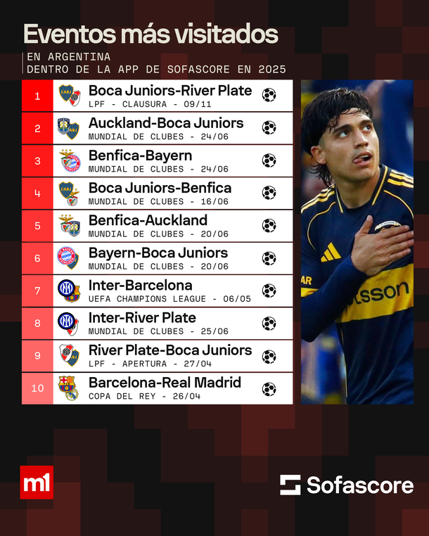 El informe anual de la plataforma deportiva global Sofascore para 2025 hizo hincapié en la pasión inquebrantable de los argentinos por sus clubes y atletas nacionales, aunque con un fenómeno particular: la fuerte presencia del tenis junto al indiscutible dominio del fútbol.