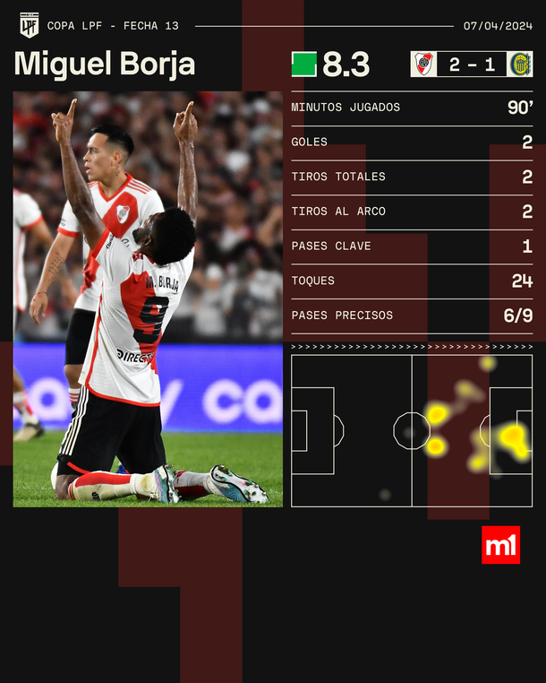 Lautaro Giaccone, con un tremendo golazo, abrió el marcador pero Miguel Borja, que acumula 12 gritos en la competencia, marcó un doblete en el complemento para darle el triunfo al equipo de Martín Demichelis. Ahora, el Millonario suma 25 unidades, lidera la Zona A y se acerca a los cuartos de final de la competencia.