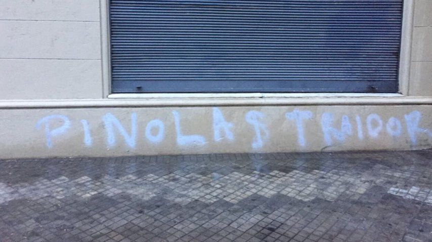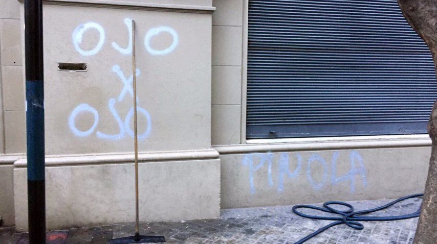 La fachada del colegio Alemán, donde estudian los hijos de Javier Pinola, amaneció con pintadas intimidatorias.