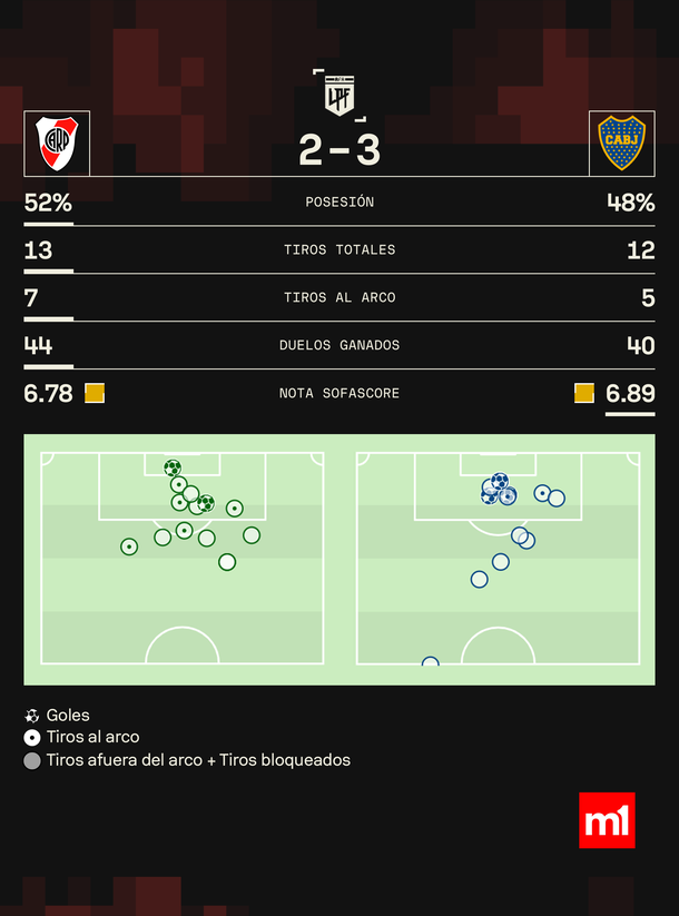 Boca, que mostró un gran nivel desde lo colectivo y pudo sobrellevar algunos momentos dónde fue superado, venció merecidamente 3-2 a River en una nueva edición del Superclásico del fútbol argentino y de esta manera se metió en las semifinales de la Copa de la Liga.