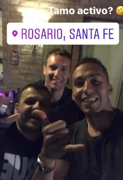 En su cuenta de Instagram, el defensor subió una foto de su festejo íntimo con amigos y escribió "Tamo' activo". Además, también subió un video en el que dice esa frase acompañada de una risa burlona para Sarmiento, que seguramente vivirá la semana más difícil desde que es jugador de Newell's.