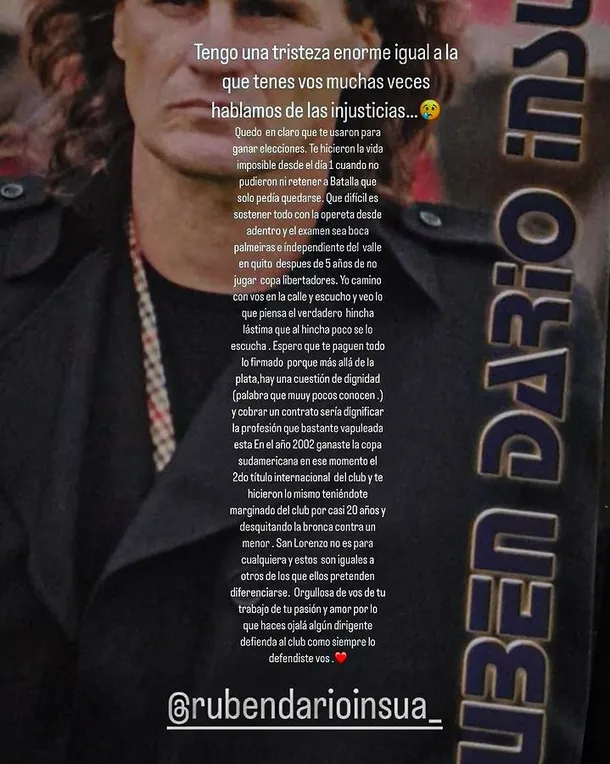 El duro mensaje de la esposa de Rubén Insúa tras su salida de San Lorenzo
