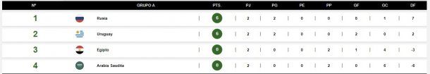 El conjunto de Oscar Tabárez, en tanto, también lleva puntaje ideal y terminó definiendo el grupo una fecha antes con triunfos ante Egipto (1-0) y Arabia (1-0).