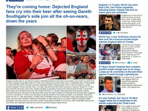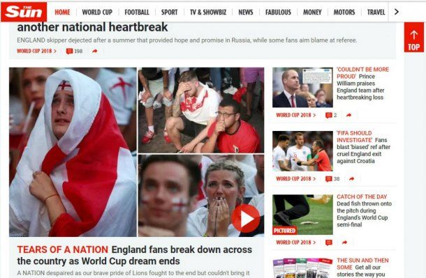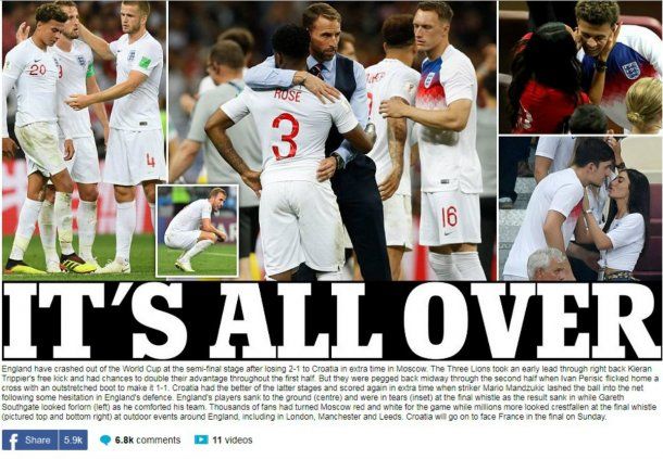 The Guardian se limitó a informar que "el sueño de Inglaterra quedó acabado por Croacia" y el título resultó sobrio al lado de las "lágrimas de una nación" que describió el periódico sensacionalista The Sun.