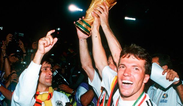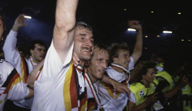 La Selección de Alemania venció 1-0 a Argentina en la final y se coronó campeona del mundo en Italia. Andreas Brehme de penal marcó el único gol. Alemania festejó tras 2 subcampeonatos.