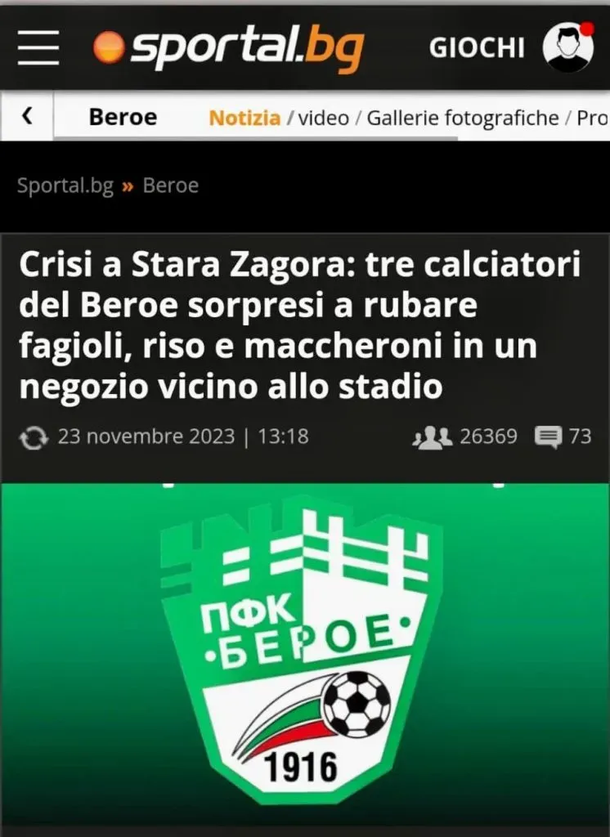 Según reveló el portal búlgaro Sportal, tres compañeros de Sebastián Villa fueron acusados de un robo a un supermercado, en cercanías al estadio Beroe, donde hace de local este equipo. La denuncia apunta que estos futbolistas robaron alimentos como arroz, porotos y macarrones.