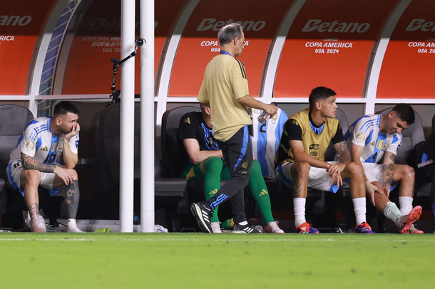El llanto de Lionel Messi en el banco de suplentes luego de salir lesionado en la final de la Copa América