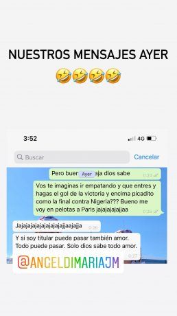 "Y si soy titular también puede pasar amor. Todo puede pasar, solo Dios sabe", respondió Di María en el chat.