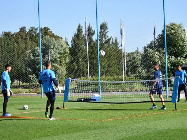 El entrenamiento comenzó a las 17:30 y en primer lugar, los arqueros, bajo las órdenes de Mauro Dobler, empezaron la jornada con un fútbol-vóley. Luego continuaron con trabajo de salida y defensa de centros, a los que sumó su experiencia el entrenador de arqueros de la selección mayor, Martín Tocalli.