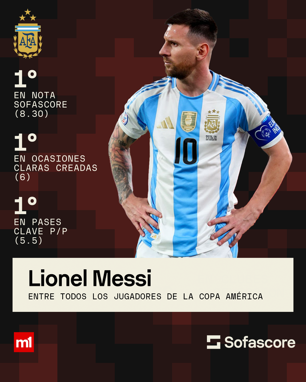 Si bien el equipo mostró un gran nivel colectivo, en estos 180 minutos el que todavía no pudo marcar fue Lionel Messi: si bien tuvo chances importantes en los dos encuentros y estuvo muy cerca, el gol se le viene negando pero no así su funcionamiento dentro de la Albiceleste. Además, tomando los otros futbolistas de la competencia, el 10 supera a todos en algunas cuestiones que muchas veces pasan desapercibidas.