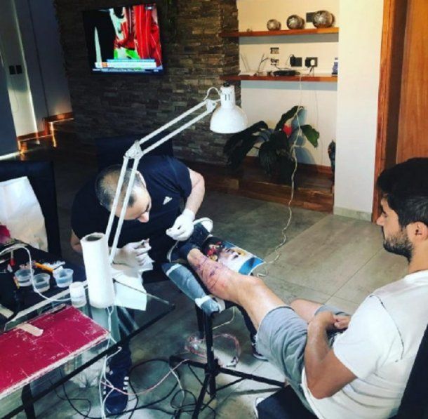 El joven decidió tatuarse la pierna izquierda con un motivo más que llamativo: nada menos que la cara de su padre con la bandera argentina de fondo.