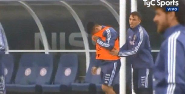 El defensor de la Academia, Renzo Saravia, tuvo que pedirle perdón al mediocampista creativo de River tras meterle los dedos en el ojo durante la práctica de la Selección argentina.