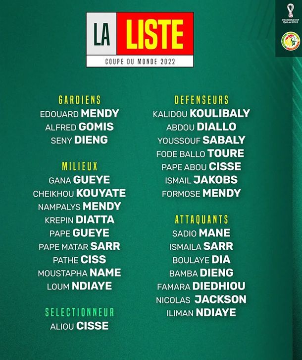 LA LISTA DE 26 DE SENEGAL PARA EL MUNDIAL DE QATAR 2022