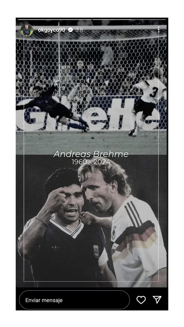 El exarquero de la Selección Argentina, Sergio Goycochea, recordó este martes al defensor alemán Andreas Brehme, que falleció debido a un paro cardíaco, y afirmó que "es un nombre" que lo "va a acompañar" toda su vida.