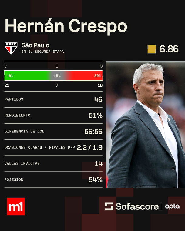 San Pablo anunció este lunes la salida de Hernán Crespo como entrenador del primer equipo. La decisión también incluyó a todo su cuerpo técnico y marca el final de la segunda etapa del técnico argentino en el club, iniciada en julio de 2025.
