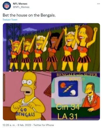 Este domingo 13 de febrero, los Cincinnati Bengals se enfrentarán a Los Ángeles Rams en la final del Super Bowl LVI y, como suele ocurrir, Los Simpson ya tomaron protagonismo en este escenario.