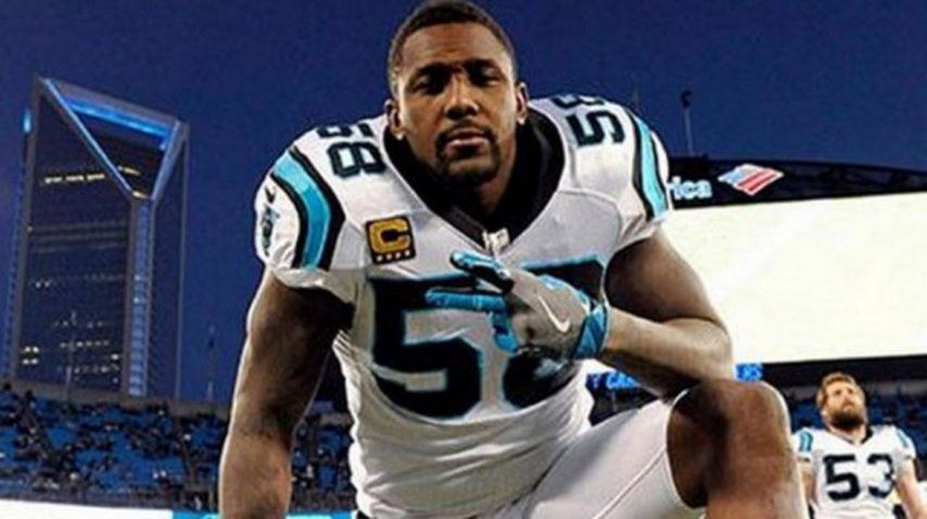 Thomas Davis, quien jugó con una protección especial en su antebrazo, participó con normalidad desde la primera jugada defensiva que tuvieron los felinos y en la que fueron dominados por los Broncos. Mirá la foto.