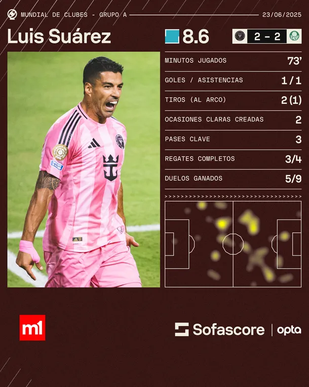 El local Inter Miami y Palmeiras de Brasil igualaron 2-2 este lunes en el marco del partido correspondiente a la tercera fecha del Grupo A, del Mundial de Clubes 2025 que se disputa en Estados Unidos, para que ambos se metan en octavos de final.