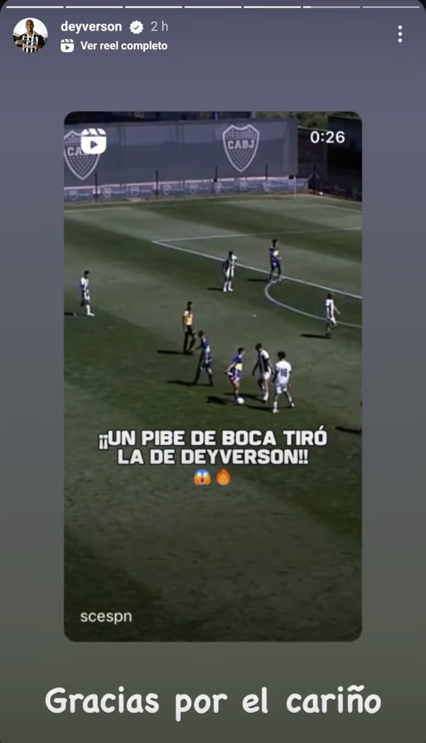 A través de sus redes sociales, el atacante agradeció a un juvenil del Xeneize que imitó uno de sus movimientos característicos en el partido contra el Millonario. "Gracias por el cariño", expresó el delantero, quien fue elogiado por su talento y carisma tanto dentro como fuera de la cancha. El gesto del jugador de las juveniles de Boca, que consistió en emular un engaño en un tiro libre que Deyverson utilizó para confundir a sus rivales y se viralizó en las redes sociales.