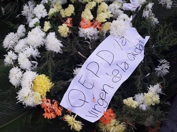 Alguien colocó las ofrendas lúgubres a la vista del público con mensajes como "Gracias SPHAN" en referencia a Luis Spahn, el presidente del Tatengue.