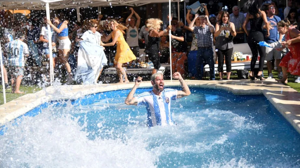 Portando banderas y vistiendo camisetas de Argentina, los manifestantes ocuparon la calle de vereda a vereda y desataron una fiesta en la que no faltó un pasacalle con la leyenda "y a Diego en el cielo lo podemos ver con don Diego y con la Tota alentándolo a Lionel", tal como señala la canción que cantan los jugadores en Qatar.