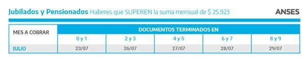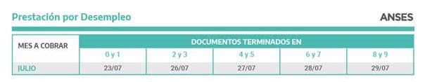 - DNI terminado en 0 y 1: cobra el 23/7