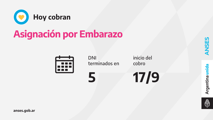 Con la utilización de la tarjeta de débito, hoy cobran la Asignación por Embarazo las titulares con documentos finalizados en 5.