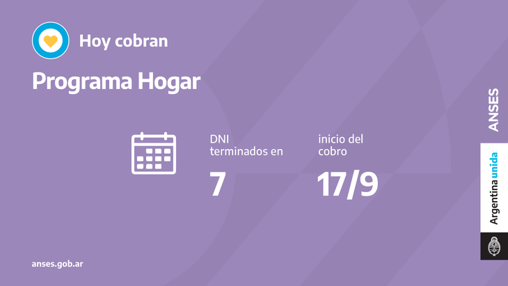 La ANSES y la Secretaría de Energía impulsan en conjunto el Programa Hogar, mediante el cual se otorga un subsidio para la compra de garrafas en viviendas que no están conectadas a la red de gas natural. Hoy cobran este beneficio las personas con documentos terminados en 7.