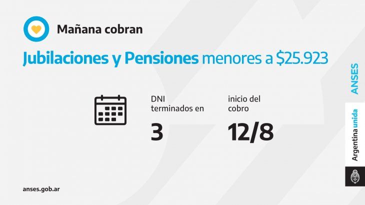 Las sucursales bancarias habilitadas atenderán por ventanilla a jubilados, jubiladas, pensionados y pensionadas con documentos terminados en 3 cuyos haberes NO SUPEREN la suma de 25.923 pesos.