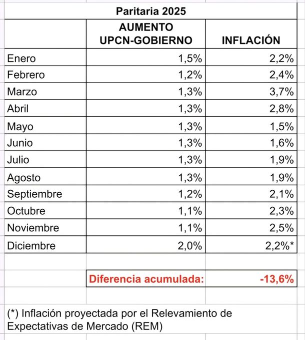 "A esta altura, en el sector público UPCN ya es socio de la motosierra. Este aumento vergonzoso se da en medio de una inflación en ascenso y anticipa un inicio de año altamente conflictivo”, concluyó.