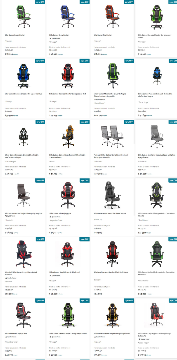Entre los artículos destacados están las sillas gamer cuyos precios parten en los 40 mil pesos.