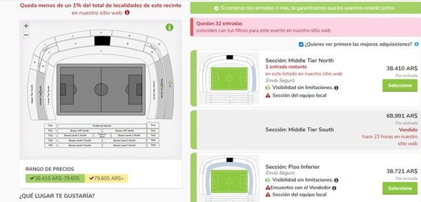 Otra opción es comprar la entrada a través de la plataforma internacional Viagogo, que ofrece plateas a valores muy por encima de los supuestamente originales.