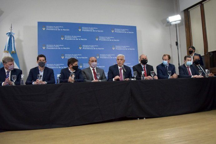 De la reunión participaron el jefe de Gabinete, Juan Manzur; el ministro de Agricultura, Ganadería y Pesca, Julián Domínguez; los gobernadores de Buenos Aires, Axel Kicillof; de Santa Fe, Omar Perotti; de Entre Ríos, Gustavo Bordet; de La Pampa, Sergio Ziliotto, y de Santiago del Estero, Gerardo Zamora. Por parte del sector empresario estuvieron presentes Nicolás Pino, de la Sociedad Rural Argentina; Carlos Achetoni, de la Federación Agraria Argentina; Elbio Laucirica, de Coninagro, y Jorge Chemes, de Confederaciones Rurales Argentinas.