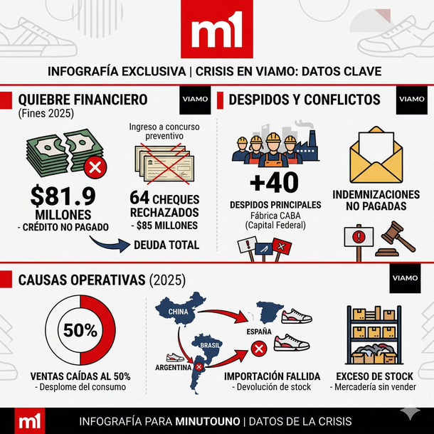 La reconocida marca de calzado Viamo ingresó en concurso de acreedores tras una severa crisis económica, despidos y decenas de cheques rechazados.