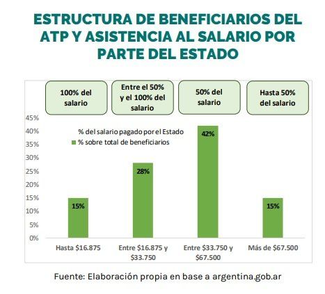Junto al IFE el gobierno nacional también lanzó el Programa de Asistencia al Trabajo y la Producción (ATP). "La implementación de las dos primeras tandas del ATP representó, en total, una erogación de más de 181 mil millones de pesos, alcanzando a más de 230 mil empresas en mayo (sueldos de abril) y a 217 mil empresas en junio (sueldos de mayo), con un total consolidado de 2,3 millones de trabajadores cubiertos", indica el informe que no tiene en cuenta el ATP 3 y que ya se está preparando una cuarta etapa del programa.