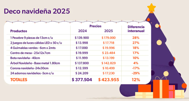 El relevamiento de la consultora Focus Market respecto a la decoración para las Fiestas arrojó un aumento del 12% con respecto al año pasado. En este 2025, armar el arbolito de Navidad y decorar con ocho productos cuesta $423.955.