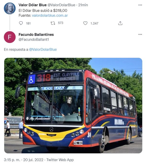 En las redes sociales, la cuenta Valor dólar Blue (@ValorDolarBlue) que registra más de 207 millones de seguidores, informó cada subida de la divisa, siendo $318 el mayor valor histórico del dólar en Argentina al cierre de esta nota.