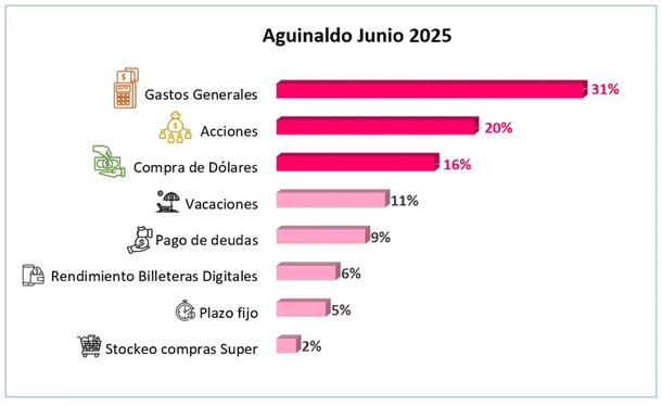 En un contexto económico en el que las prioridades se reconfiguran, el aguinaldo de junio llegará para muchos trabajadores como un alivio más que como una oportunidad de disfrute. Según un estudio de Focus Market, el 31% de los argentinos destinará esa suma extraordinaria al pago de gastos generales como servicios básicos, expensas, cuotas escolares, medicamentos y prepagas.
