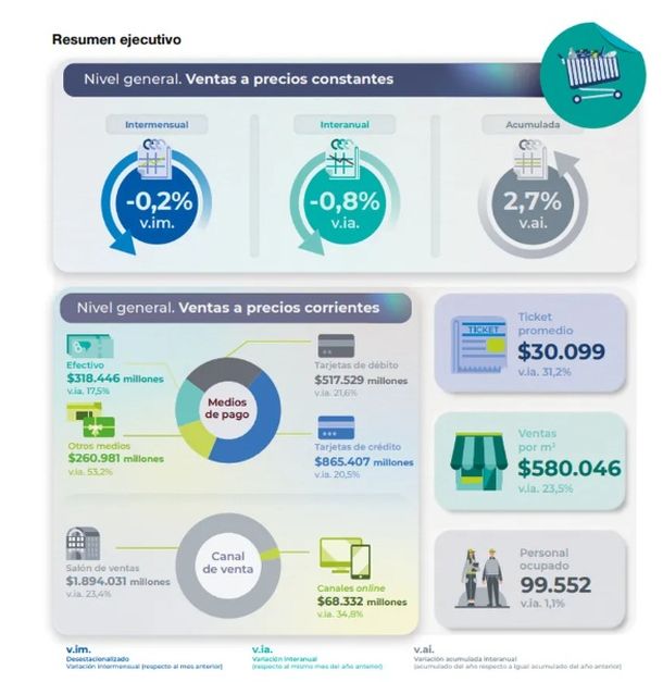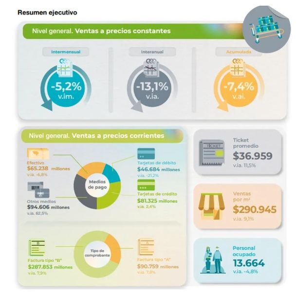 Los datos oficiales muestran retrocesos preocupantes: las ventas mayoristas se desplomaron 13,1% intermensual y los supermercados también retrocedieron -0,8%.