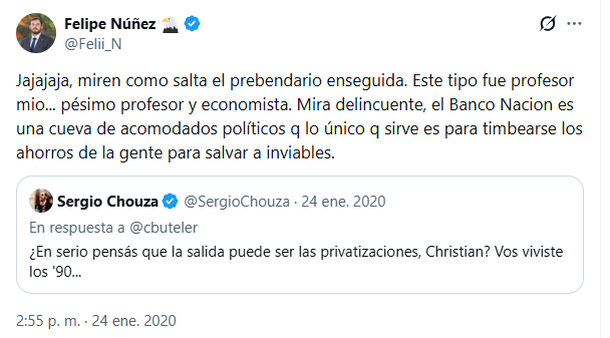 El libertario Felipe Núñez tildaba al banco estatal de "cueva de acomodados", pero ahora se benefició con un dudoso préstamo de $475 millones del Banco Nación.