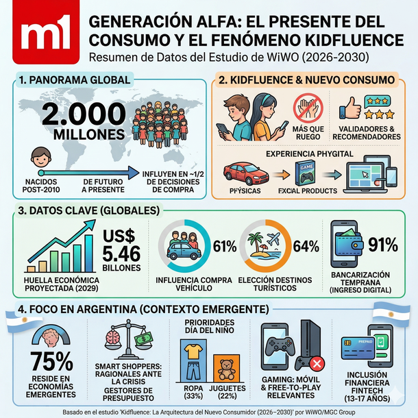 Un reciente estudio elaborado por WiWO —startup de innovación y marketing estratégico del grupo MGC— titulado "Kidfluence: La Arquitectura del Nuevo Consumidor (2026–2030)", analizó en profundidad cómo esta franja etaria está reconfigurando las dinámicas dentro de las familias.