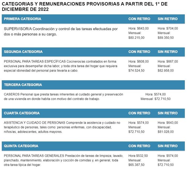 La Comisión Nacional de Trabajo en Casas Particulares acordó la semana pasada en el ministerio de Trabajo de la Nación un aumento del 24% para las empleadas domésticas en cuatro tramos sobre los salarios vigentes en noviembre.