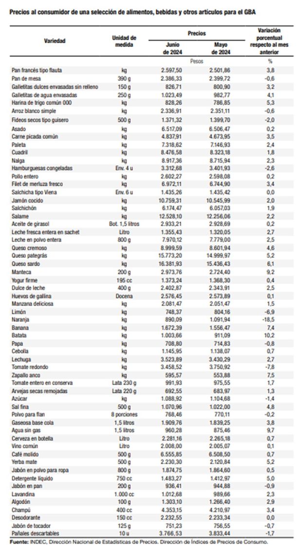 La inflación en "Alimentos y bebidas no alcohólicas" en junio estuvo por debajo del nivel general, se ubicó en el 3% y acumula un alza del 70,5% en el año.