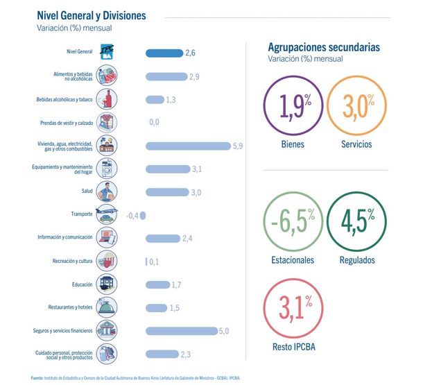 Durante febrero los servicios aumentaron un 3% por sobre los bienes que avanzaron un 1,9%. "La dinámica mensual de los bienes respondió fundamentalmente a los incrementos en los precios de los alimentos (principalmente carnes) y, en menor medida, a los aumentos en los valores de los combustibles y lubricantes para vehículos de uso del hogar y de los medicamentos", informó el Instituto de Estadística y Censos de la Ciudad Autónoma de Buenos Aires (Idecba).